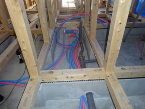 床を作る前に先行して給排水の配管を行っています。