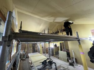 天井にボード張りを行っています。