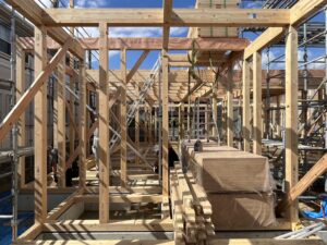 仮筋交いは外壁の構造用合板や筋交いなどの構造材を取り付けた後に取り外しをします。