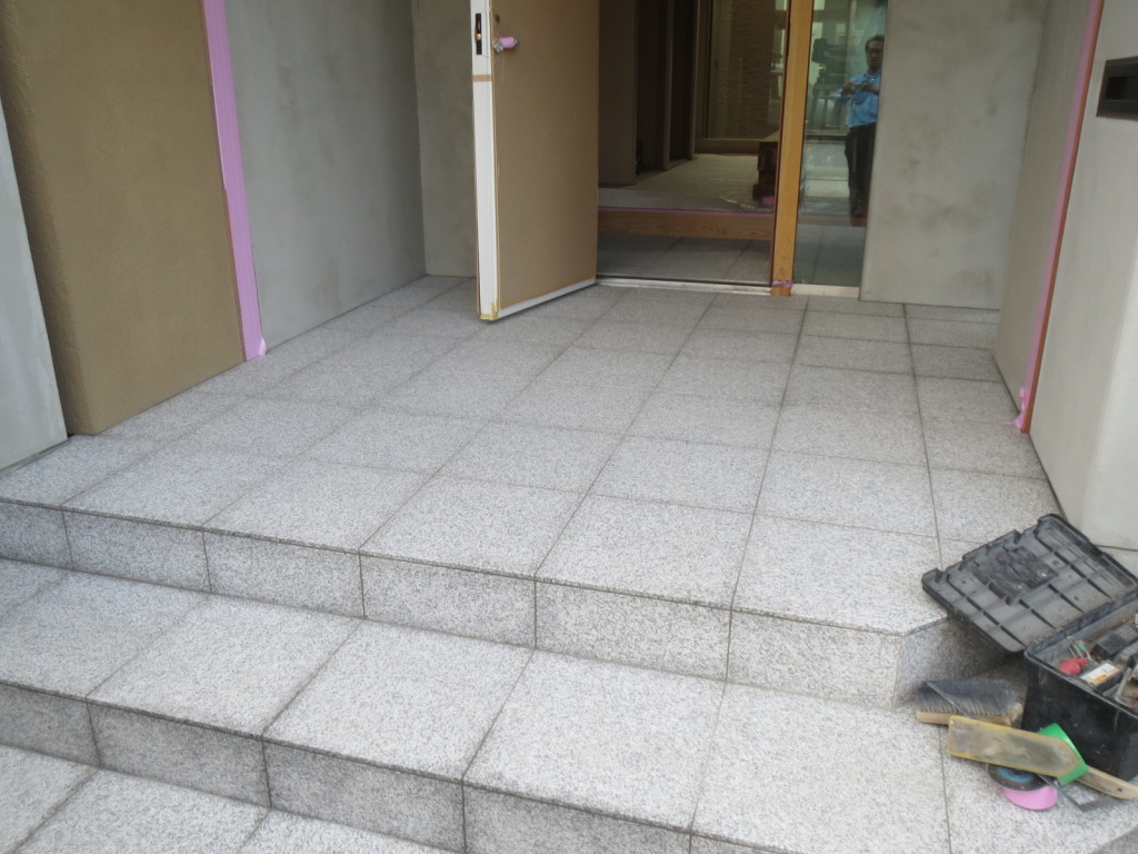 内部は足場が組まれ、内装仕上の下地処理が行われています。