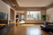 奥のリビング空間は、床材にタモ無垢材を使用、織り上げ天井には間接照明の光が柔らかく映し出され、ゆったりと落ち着く雰囲気に仕上げました。シアタールームとしても使用出来るよう設計しており、歌劇鑑賞がお好きな奥様とお嬢様のお気に入りの空間となっています。テレビ上部から120インチのワイドスクリーンが下りてきて、コーナー窓には隠れた戸袋から可動式の建具が引き出せるようになり、完全遮光を実現できます。