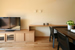 リビングからは境界際に隣接するお寺の屋根と公園の木が借景となる。最大5.2mの天井高さを確保したリビングダイニングは、床にナラ材、天井にシナ材、壁には珪藻土を左官で仕上げ、タモ材をふんだんに使用した家具を造り付けた。天然素材で構成された空間は差し込む光を柔らかに拡散する。