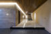 ポーチの夜景。H2.5mの両開き門扉は、四方をスチールで製作し、玄関扉と同材の組子を嵌め込んだALLオリジナルデザイン。庇は2重にかかっており、上部の庇は門扉から2.7m、下部の庇は2.3m張り出している。軒天井にはどちらもチークの無垢材を使用し、来訪者を温かく迎え入れる。