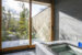 縦に5.6m延びる石柱が吹抜けを強調したダイニングルーム。窓にはALLオリジナルの木製サッシを採用。各窓の上部にはウォールナットの無垢材を使用したカーテンボックスを設け、電動ロールスクリーンを格納している。